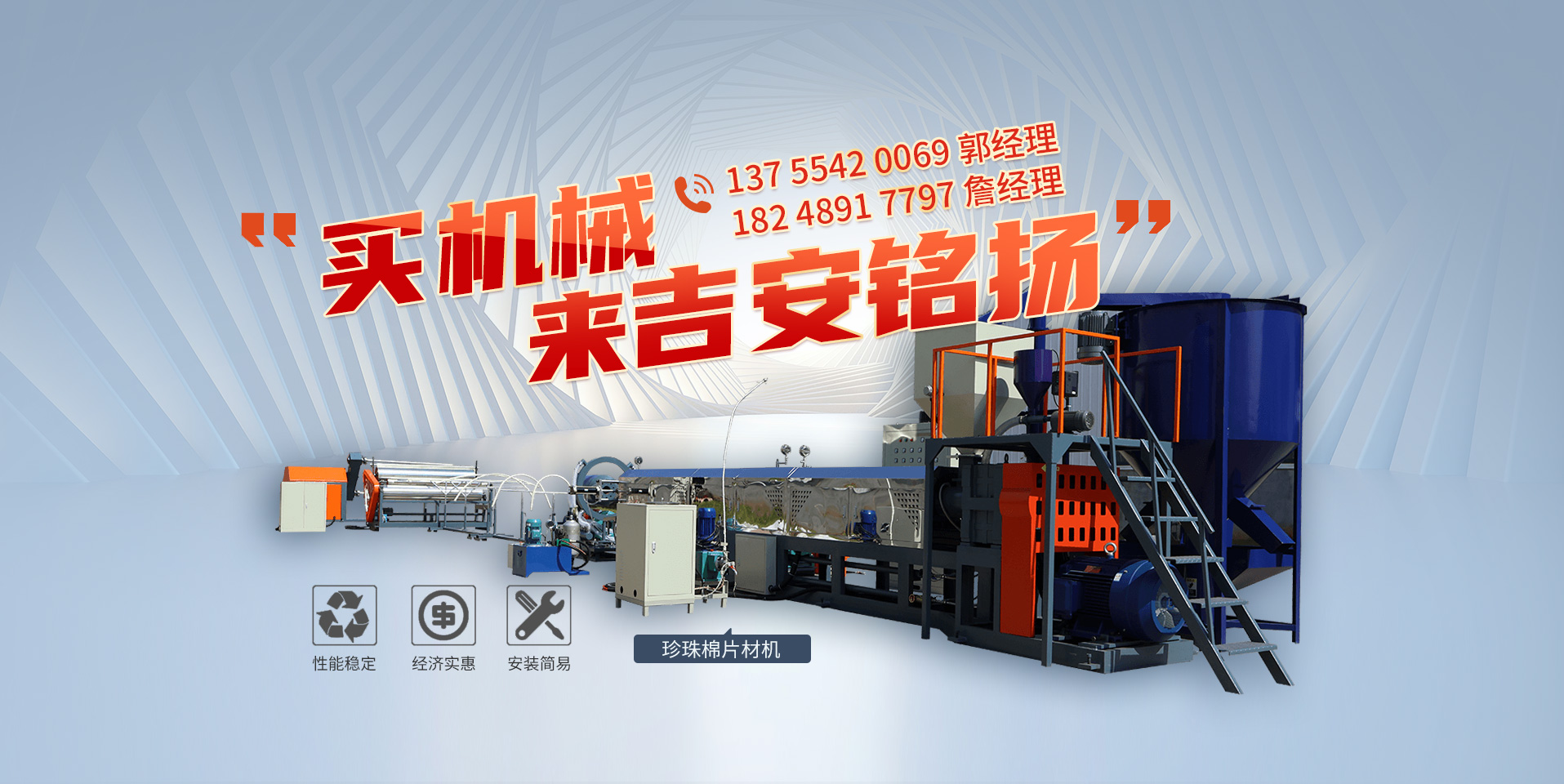吉安銘揚(yáng)機(jī)械有限公司成立于2019年,總經(jīng)理有著二十多年從業(yè)經(jīng)驗(yàn),是一家專注于珍珠棉機(jī)械設(shè)備研發(fā)、開(kāi)發(fā)、生產(chǎn)及銷售的現(xiàn)代高科技企業(yè),主要產(chǎn)品有:珍珠棉發(fā)泡機(jī)、覆膜機(jī)、珍珠棉電復(fù)合機(jī)、珍珠棉造粒機(jī)等數(shù)十種產(chǎn)品,應(yīng)用于包裝、建筑、材料等行業(yè)??偛考把邪l(fā)基地設(shè)立于風(fēng)景秀麗的紅色革命根據(jù)地吉安。